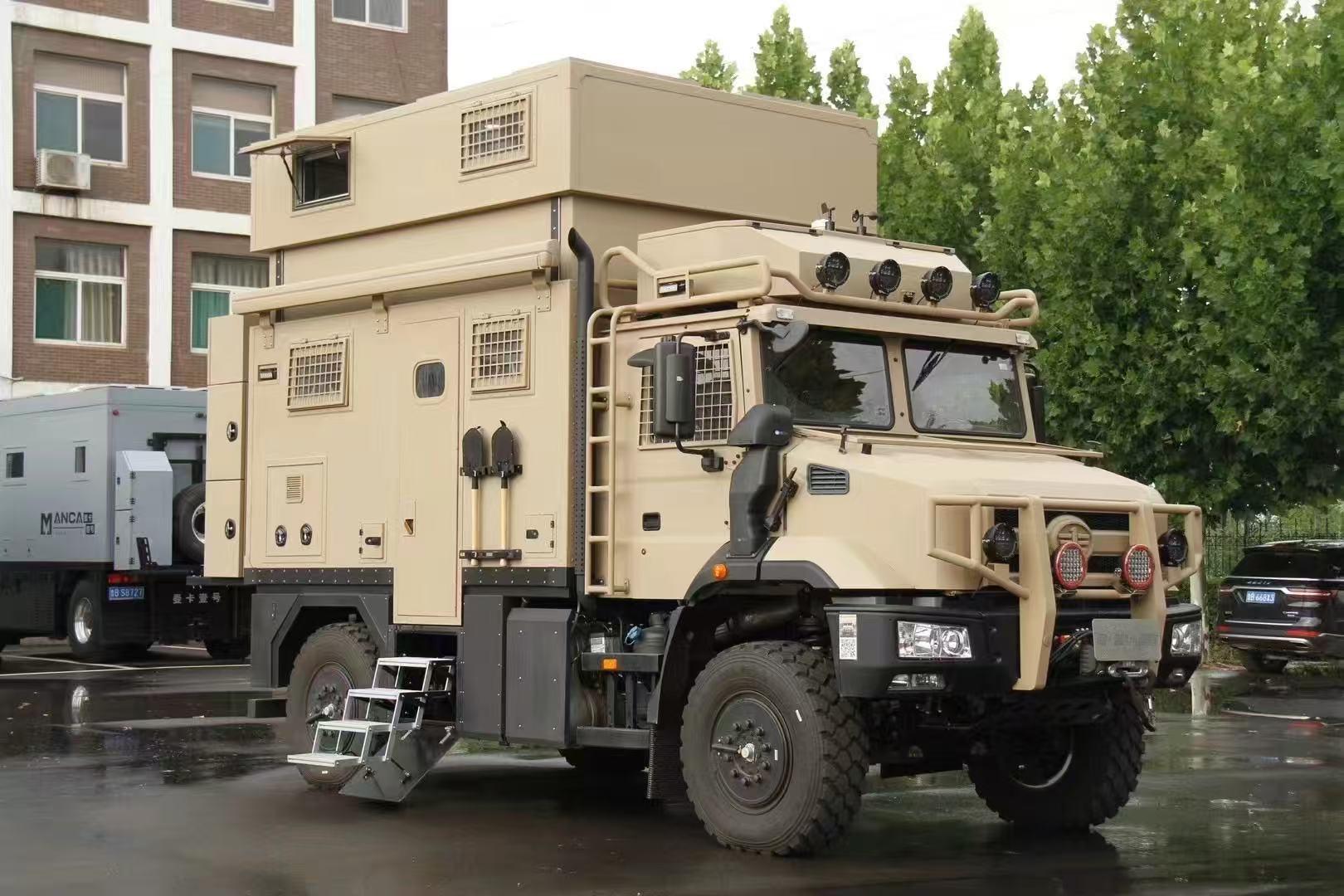 汕德卡底盘房车,汕德卡底盘矫正而成,搭载10速自动挡变速箱,排量6.870L,峰值扭矩为1060牛米;A型越野车、内升顶、外升顶......汕德卡底盘打造的房车内饰布局各种,分为好意思式格调与标准格调。