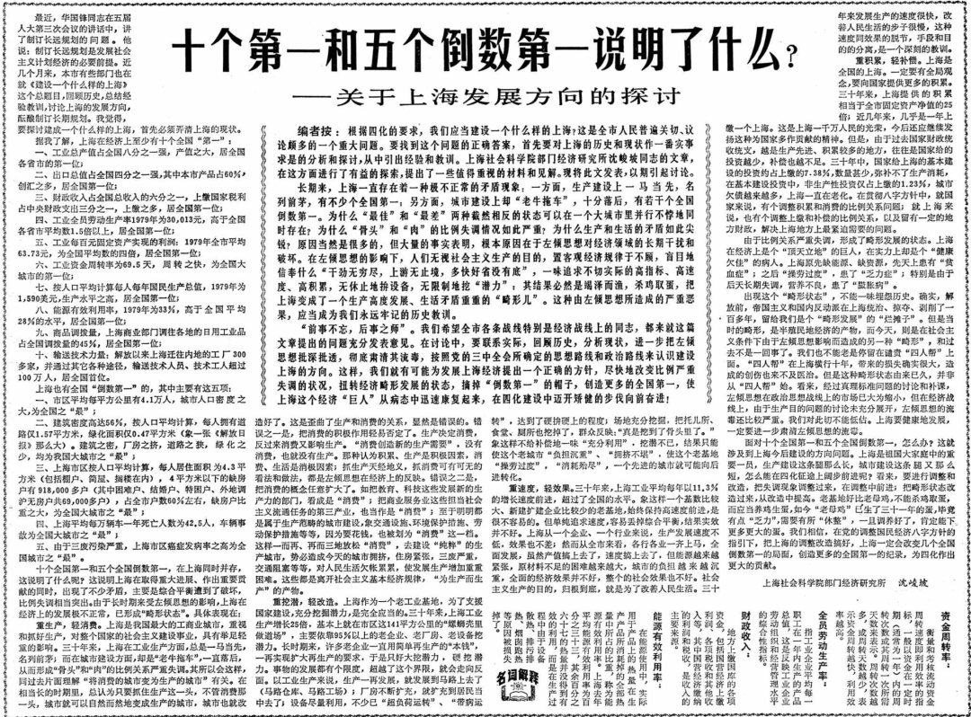 8、沈峻坡,《十个第一和五个倒数第一讲解了什么?——对于上海发展地点的探讨》,自若日报,1980年10月3日;