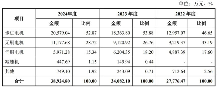 贸易收入主要起首于步进电机,营收占比在50%傍边。