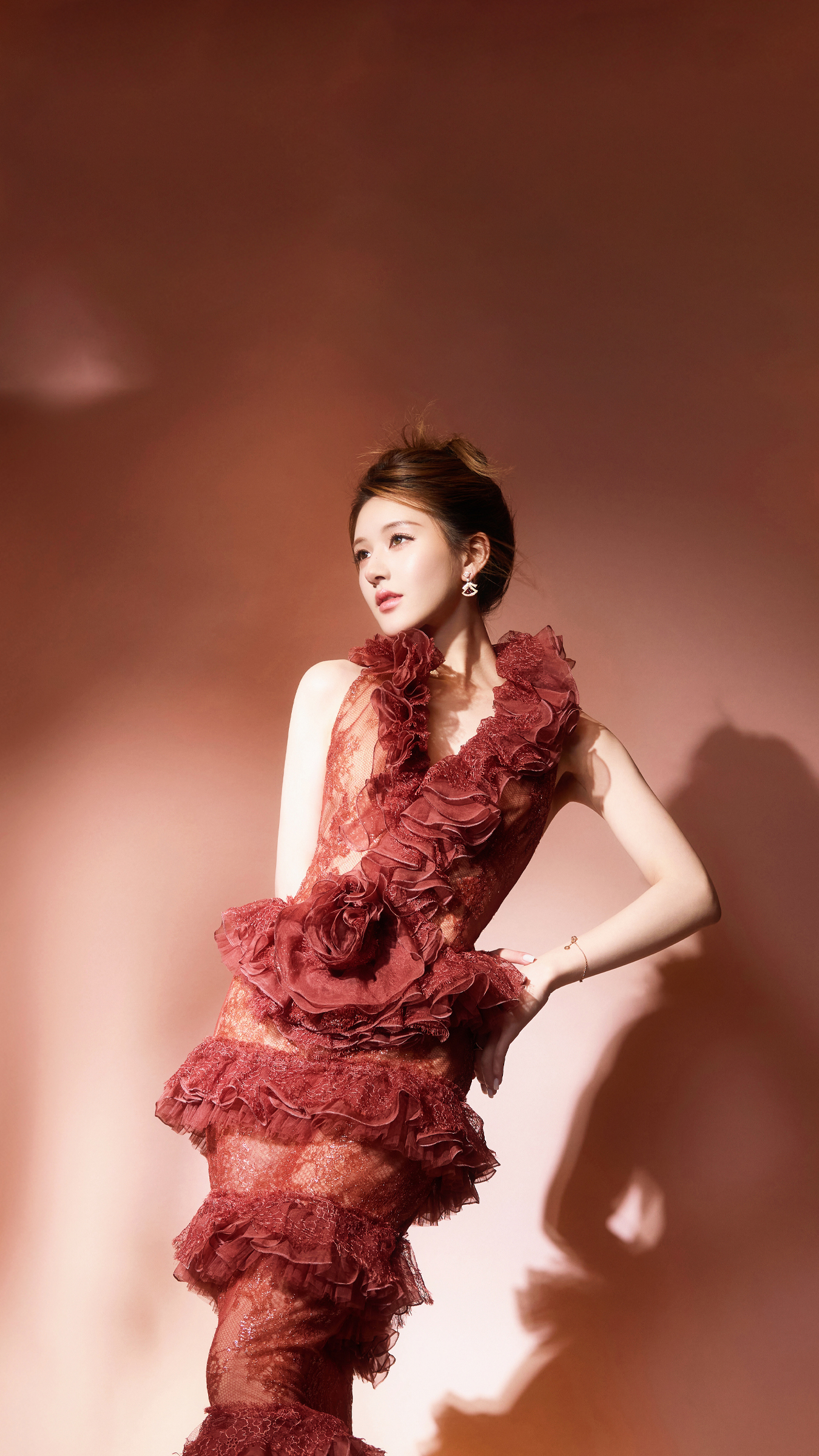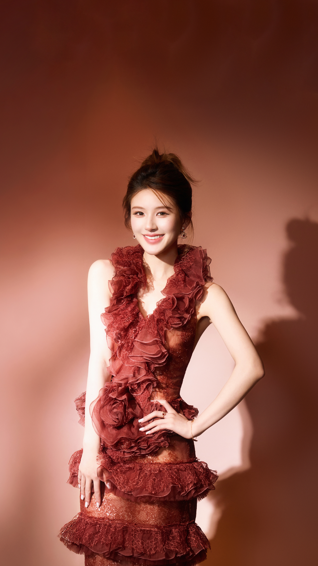 更绝的是她的气象,目光显露又带着点小倔强,嘴角微微一扬,甜润感扑面而来,但又不腻东说念主,反而透着一股子“姐很暖和但不好惹”的气场。发型也超神思,看似拖沓挽起的发髻,实则每一缕碎发都在精确交易,光影打下来那一霎,连空气都变得有质感了。难怪网友直呼:“这不是红裙,这是战袍!”