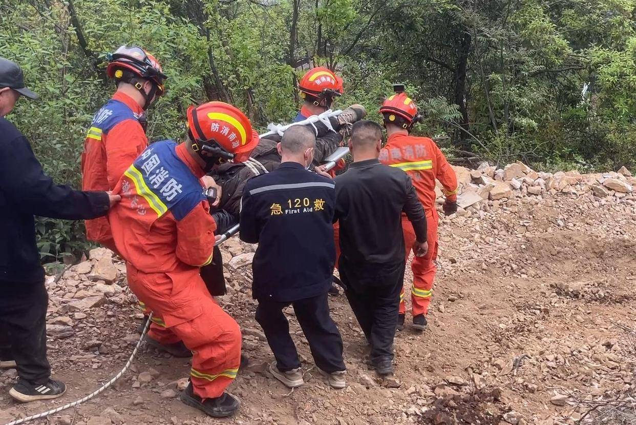 "救护车底盘不够高,根底开不上来!",120急救东谈主员慌乱地告诉消防员。情况紧要,指示员赶快制定维持决议:先用液压顶杆和绳子固定车体,珍摄二次侧翻。四名消防员用担架+提拔绳子兜住伤员,禁受"路线尽力"神色转机下山。