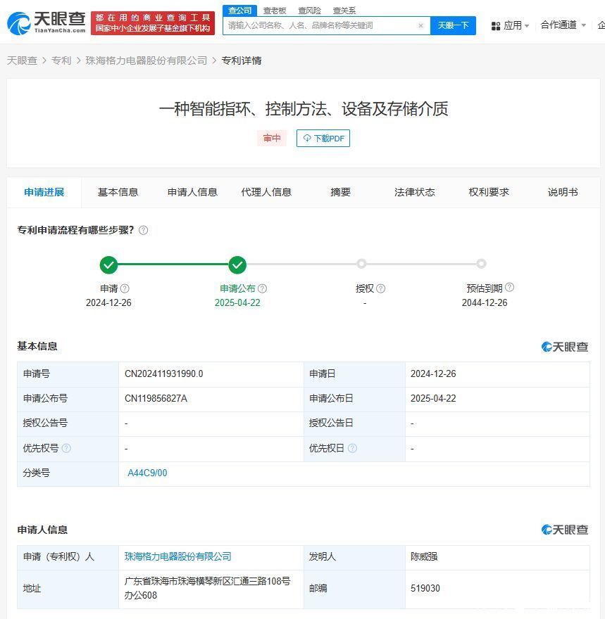 天眼查App知道开云体育,近日,珠海格力电器股份有限公司苦求的“一种智能指环、收敛顺序、缔造及存储介质”专利公布。