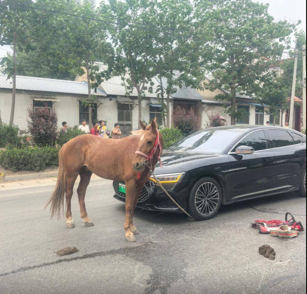 6月1日,山东泰安新泰市放城镇241省谈,一畜生交往市集隔壁,一匹马蹿上省谈,与一辆轿车发生碰撞,互有毁伤。